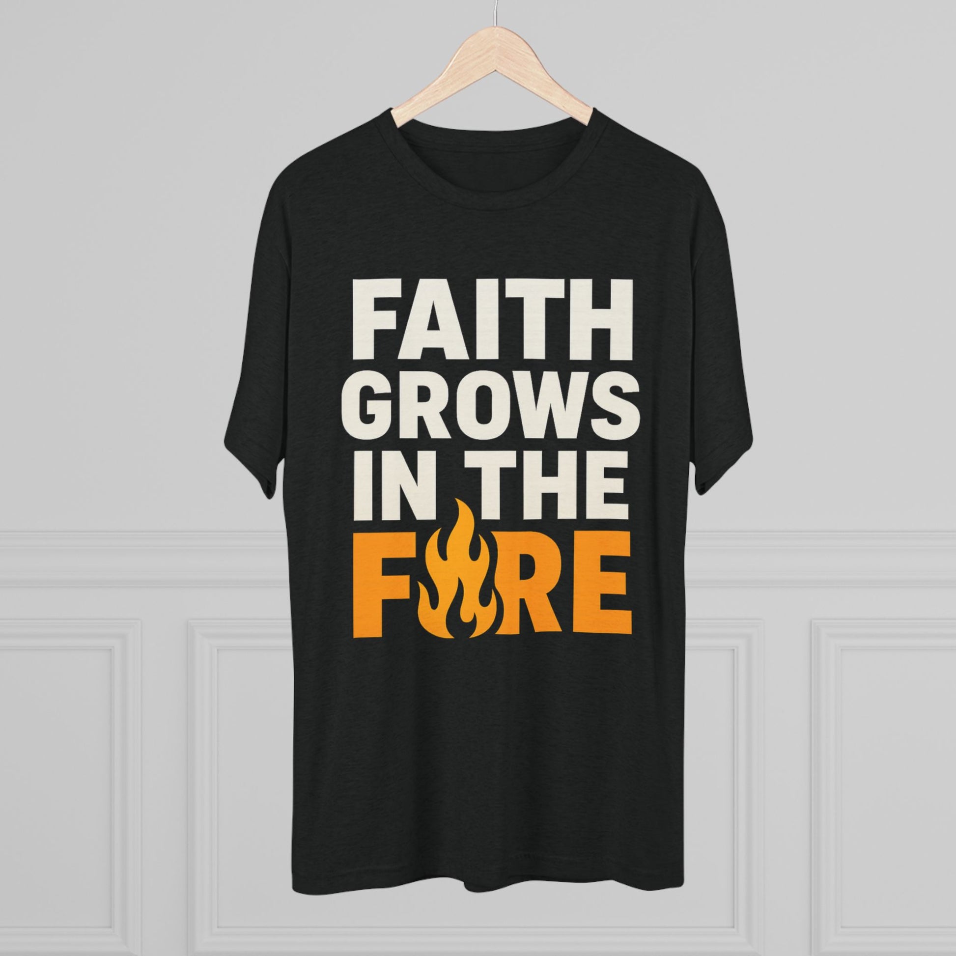 Faith Grows in the Fire Unisex Tri-Blend Crew Tee, Inspirational Tee, Fire-themed T-shirt, Motivational Gift, Faith Apparel